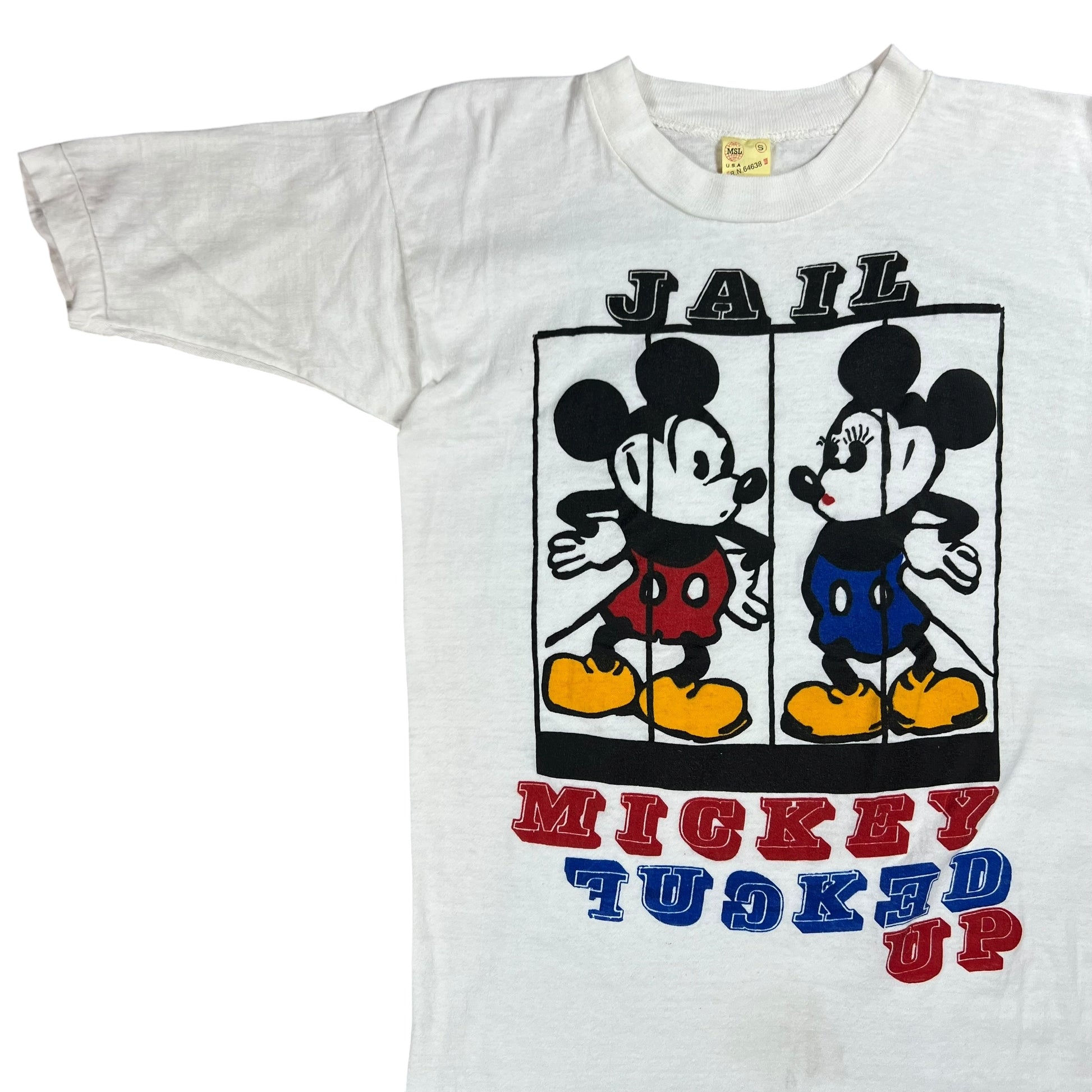 Vintage 1970s Mickey Fucked Up Jail Mickey Mouse parody tee (XS)