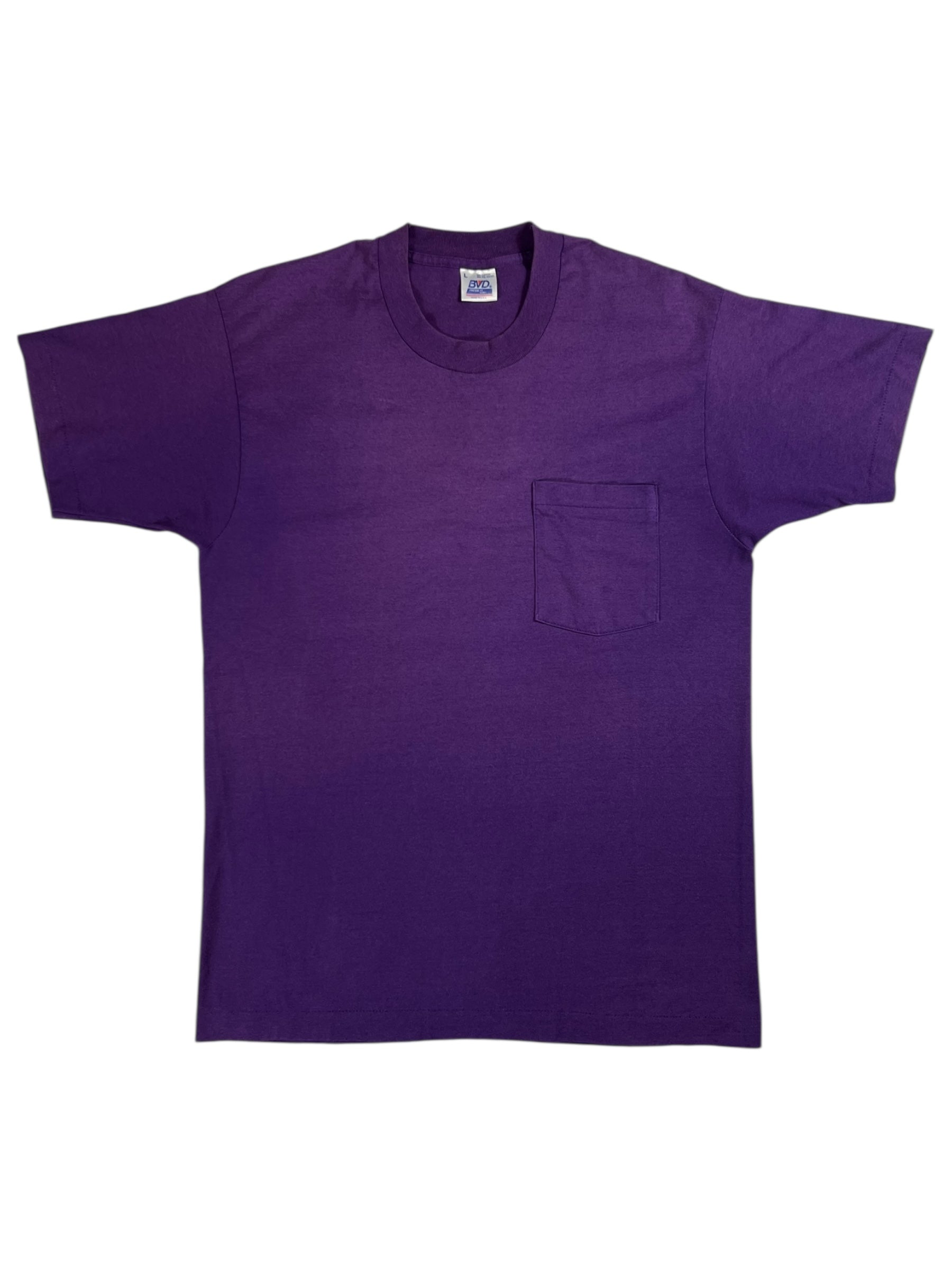Vintage 80s BVD faded purple selvedge pocket tee (L)