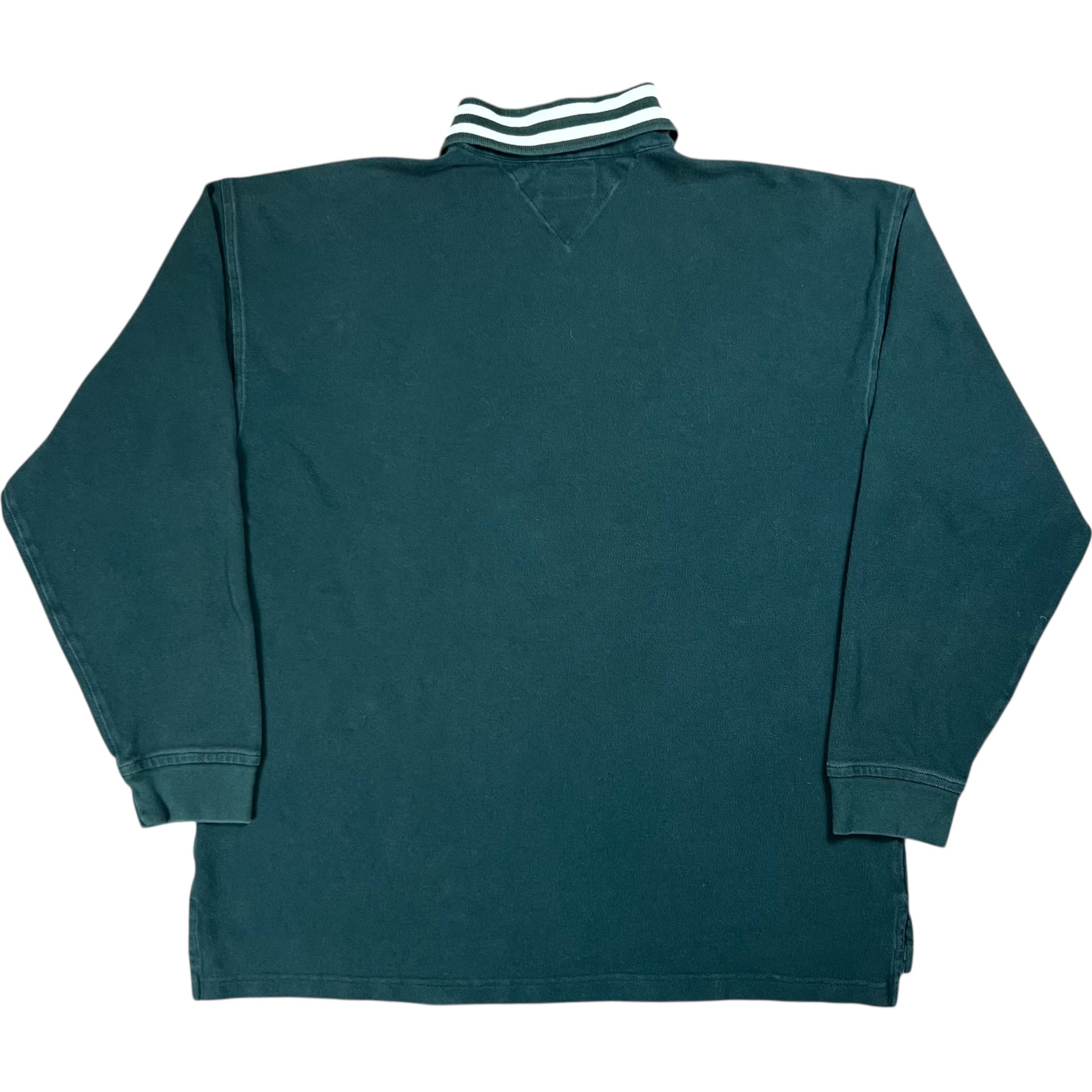 Vintage 90s Tommy Hilfiger mini flag green long sleeve rugby polo shirt (XL)
