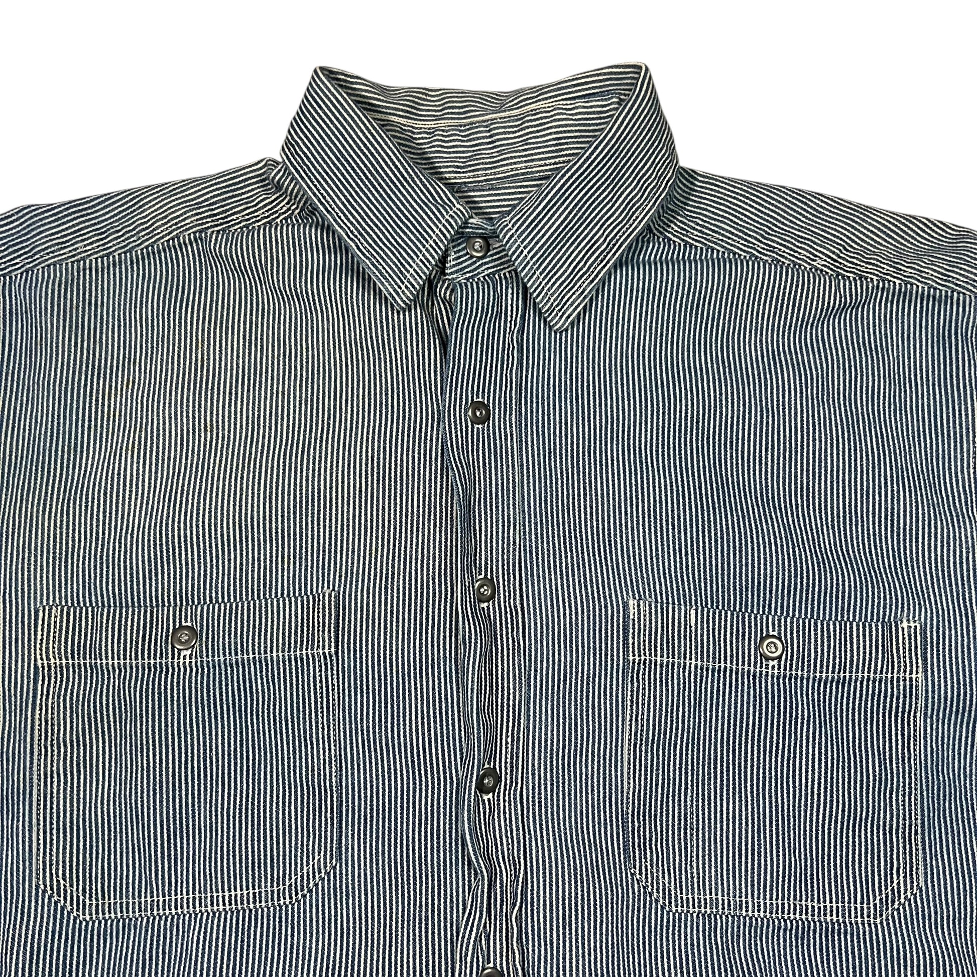 Vintage Y2K The Gap Warehouse navy white striped button up shirt (L)
